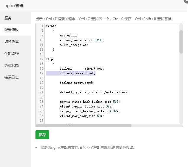 軟件管理 > Nginx > 設(shè)置 > 配置修改