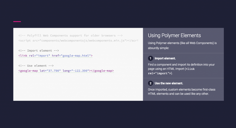 谷歌材料設(shè)計(jì)打響了第一炮,它在所有新式瀏覽器的支持下,提供了來自于Android app的多種多樣的動(dòng)畫和互動(dòng)組件,以及像這樣的簡單標(biāo)簽: